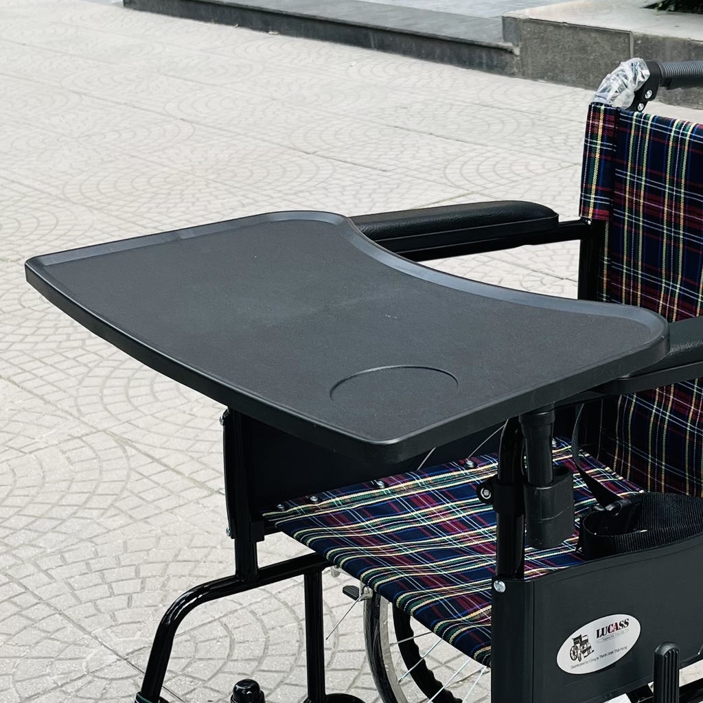Bàn ăn dành cho xe lăn tay. Có thể tháo lắp dễ dàng, gắn được vào các loại xe lăn tay có kích thước phù hợp
