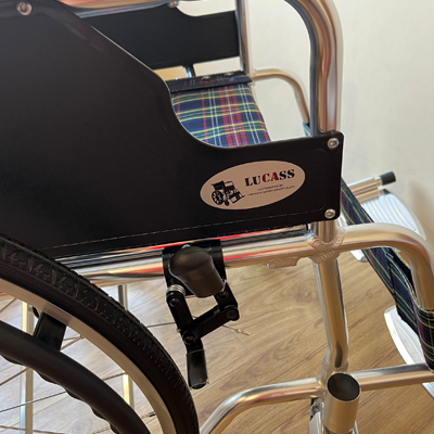 Xe lăn Lucass hàng chính hãng luôn có tem Lucass cùng dòng chữ Distributed by Thaihung medical equipment
