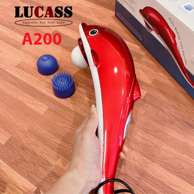 Máy massage cầm tay Lucass A200 với hình con cá heo màu đỏ.