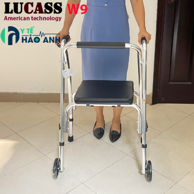 Khung tập đi có ghế ngồi Lucass W9 là phương tiện hỗ trợ việc tập đi cho người bệnh phục hồi chức năng, người già,người ốm đi lại khó khăn, khung có chỗ ngồi để người sử dụng có thể ngồi nghỉ khi mệt
