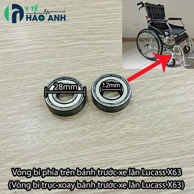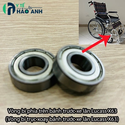 Mỗi trục xoay bánh trước sẽ gồm 2 vòng bi. Vòng bi trục xoay xe lăn Lucass X63 khác với vòng bi trục xoay các model khác như xe X7, X8, X9