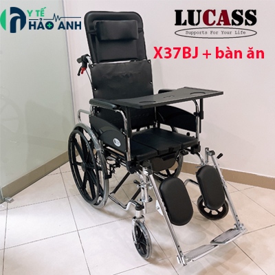 Xe lăn Lucass X37BJ + bàn ăn là sự kết hợp giữa xe lăn Lucass X37BJ có gắn thêm bàn ăn.