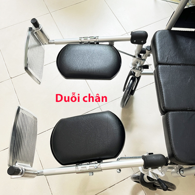Hai tấm để chân có thể nâng lên để duỗi chân, phù hợp với người thích ngồi thư giãn, nằm hoặc những bệnh nhân không gập được chân/ chân bó bột.