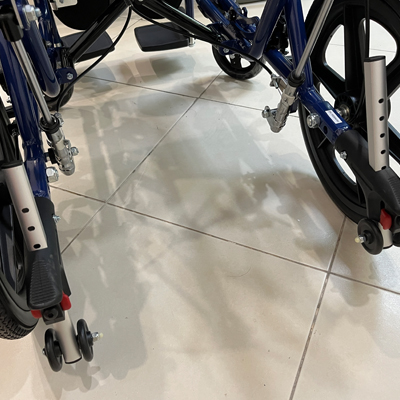 Xe lăn cho trẻ bại não Lucass X58L có khung bằng hợp kim nhôm sơn màu xanh.