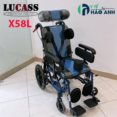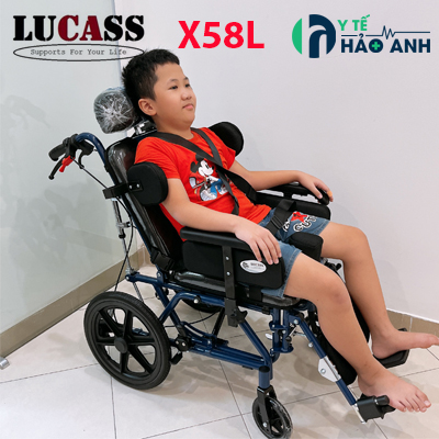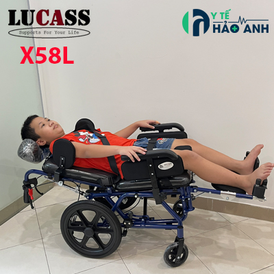 Xe lăn Lucass X58L là xe lăn dành cho trẻ bại não, có thể ngồi hoặc ngả ra nằm được.