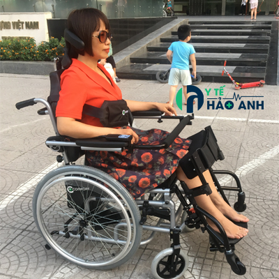 Xe có bộ phận nâng đỡ đầu, đai ngang ngực và chặn chân, giúp người đứng ngồi không vững được an toàn. Đây còn là chiếc xe lăn giúp người sử dụng phục hồi chức năng rất tốt, tập giữ người đứng lên, ngồi xuống hẳn hoặc đứng lưng chừng đều được.