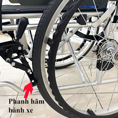 Phanh hãm ở bánh xe sau giúp cố định xe chắc chắn, an toàn khi người dùng lên xuống xe.