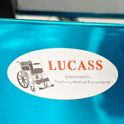 Lưu ý: Để tránh mua phải hàng giả, hàng nhái, Quý khách kiểm tra có tem Lucass chính hãng dán bên thành xe như sau: Tem có hình xe lăn và chữ LUCASS to, dòng chữ nhỏ Distributed by Thaihung Medical Equipments.