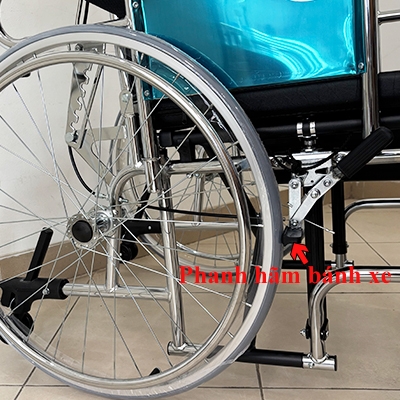 - Hệ thống phanh kép: Tay đẩy có phanh giúp xe dừng lại và hai bên bánh xe có phanh hãm giúp cố định xe, xe không bị trôi khi không cần di chuyển