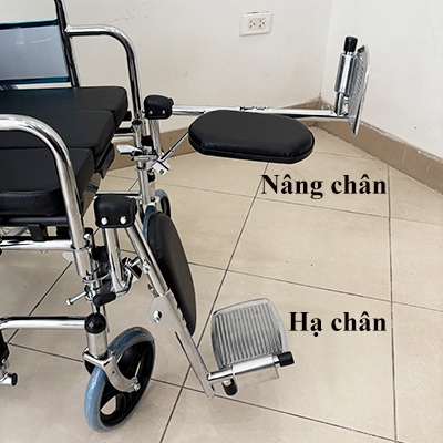 - Hai bên thành xe và bộ phận để chân có thể tháo rời, thuận tiện cho việc di chuyển từ giường sang xe lăn và ngược lại. Bộ phận để chân nâng hạ linh hoạt, phù hợp với nhu cầu của từng người.