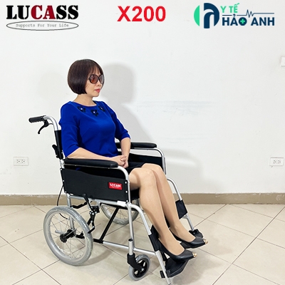 Xe lăn Lucass X200 thuộc dòng xe lăn gọn nhẹ, không có vành lăn tay cho người ngồi, thường sử dụng để đi du lịch hoặc dành cho những người không thể tự lăn tay được, cần có người đẩy.