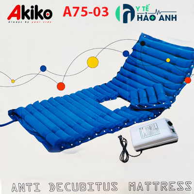 Đệm hơi chống loét Akiko sử dụng để chống loét cho bệnh nhân ốm nằm lâu ngày, bệnh nhân bị tai biến, đột quỵ, người khuyết tật vv. Đệm có 1 miếng có thể tháo rời khi người bệnh cần đi vệ sinh trên giường y tế 2 hoặc 3 tay quay. Miếng đệm này được thiết kế đặt trùng với vị trí của bô vệ sinh trên giường bệnh
