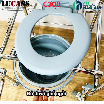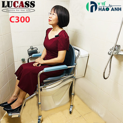 Ghế bô vệ sinh có bánh xe và chỗ để chân Lucass C300/GX300 là thiết bị vệ sinh dành cho người già, người ốm, người khuyết tật, dùng trong gia đình hoặc bệnh viện