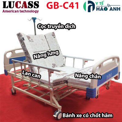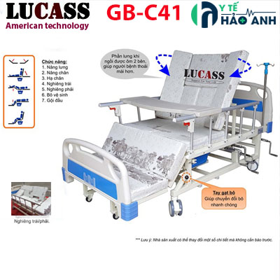 Giường bệnh nhân đa năng 4 tay quay Lucass GB-C41 là giường đa năng cao cấp có nhiều chức năng nhất của dòng tay quay