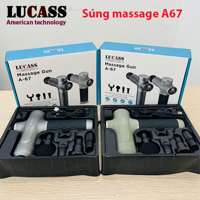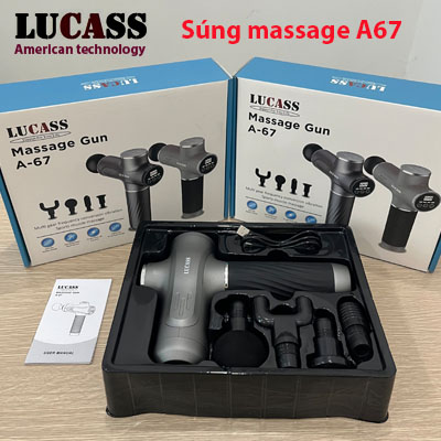 Súng massage Lucass A67 là máy massage cầm tay sử dụng pin sạc, có thể dùng massage toàn thân, có tác dụng tăng cường tuần hoàn máu, giảm đau mỏi cơ thể, thư giãn sau 1 ngày làm việc căng thẳng.