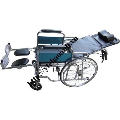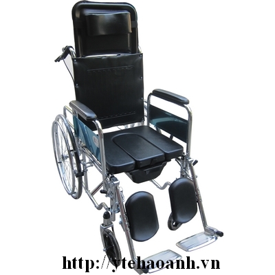 Xe lăn đa năng có bô vệ sinh, có thể ngả nằm thành giường với độ chếch như nằm trên giường lúc gối đầu