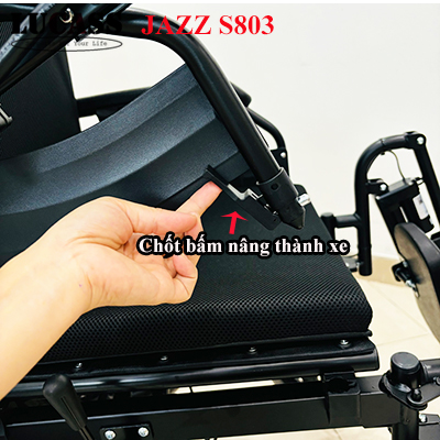Trả lời: Xe lăn điện Lucass Jazz S803 được thiết kế với khung thép chắc chắn, có tải trọng tối đa là 100kg.