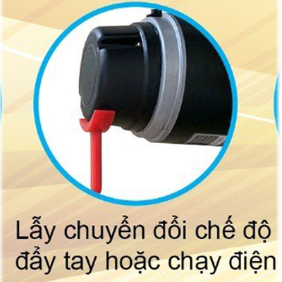 Có thể chuyển đổi chế độ chạy điện và chế độ đẩy xe một cách dễ dàng bằng cách đẩy lẫy đỏ ở 2 bên động cơ.