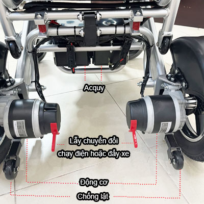 Phía sau có hệ thống chống lật, giúp người dùng yên tâm khi di chuyển