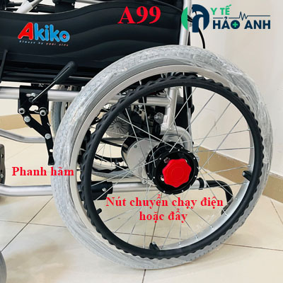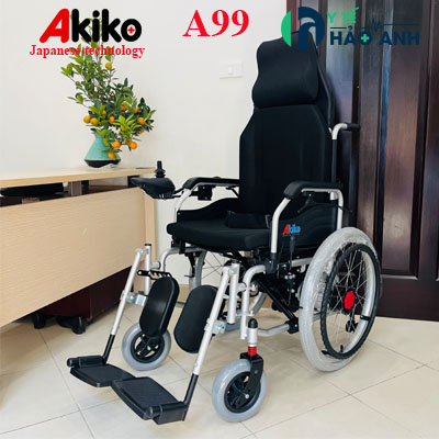 Xe lăn điện có thể ngả nằm Akiko A99 thế hệ mới được cải tiến từ xe lăn điện ngả nằm Akiko A99 phiên bản cũ. Phiên bản mới ngả nằm bằng cách bóp phanh ở thành xe, không cần người trợ giúp. Phiên bản cũ ngả nằm bằng cách bóp phanh ở tay đẩy - cần người trợ giúp phía sau.