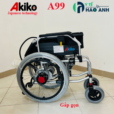 Xe lăn điện Akiko A99 có thể gấp lại gọn gàng để cất đi hoặc mang đi xa.