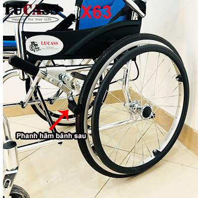 - Phanh hãm ở bánh sau: Cố định xe khi lên/xuống hoặc khi không sử dụng, tránh tình trạng trôi xe.