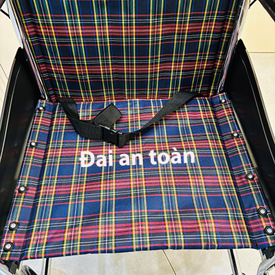 Xe lăn Lucass X96 vải kẻ bánh nan hoa, gấp gọn