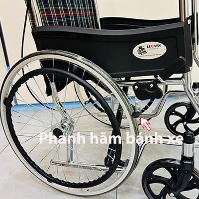 Hỏi: Xe lăn Lucass X96 có phanh hãm an toàn không? Đáp: Có. Xe lăn Lucass X96 được trang bị hệ thống phanh kép, bao gồm phanh tay cho người đẩy và phanh hãm 2 bên bánh xe giúp cố định xe chắc chắn khi đứng yên.